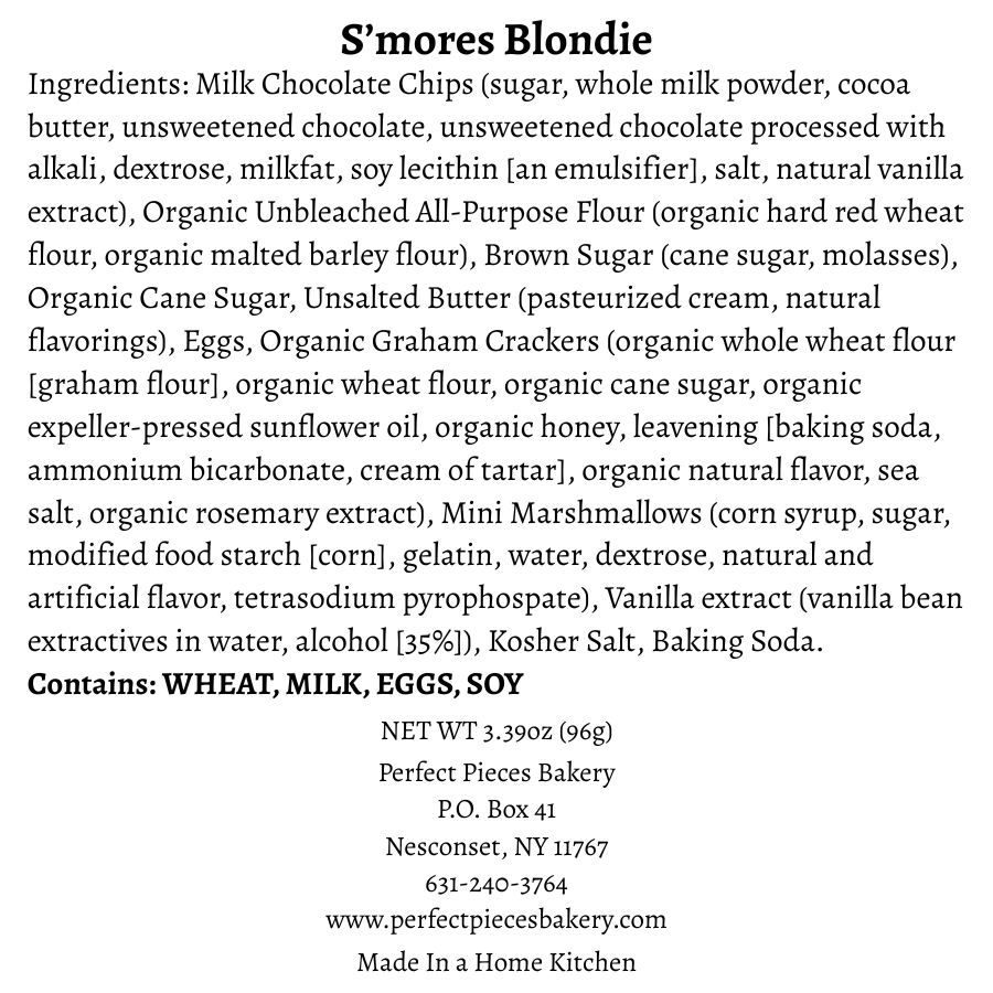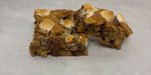 Thick, chewy cookie bar packed with milk chocolate chips, marshmallows, and graham crackers.